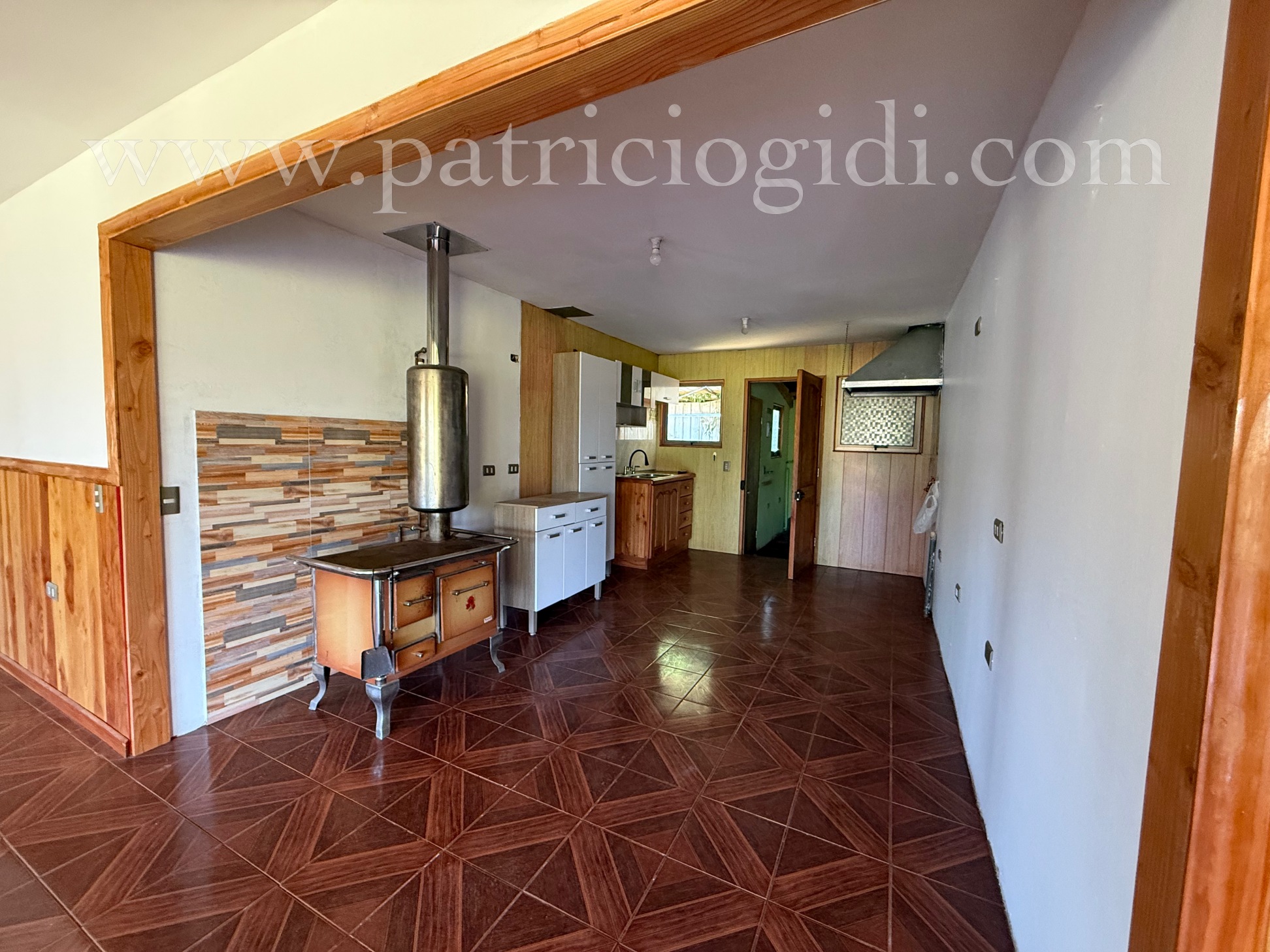 - Cocina abierta, con cocina a leña y bodega tipo despensa